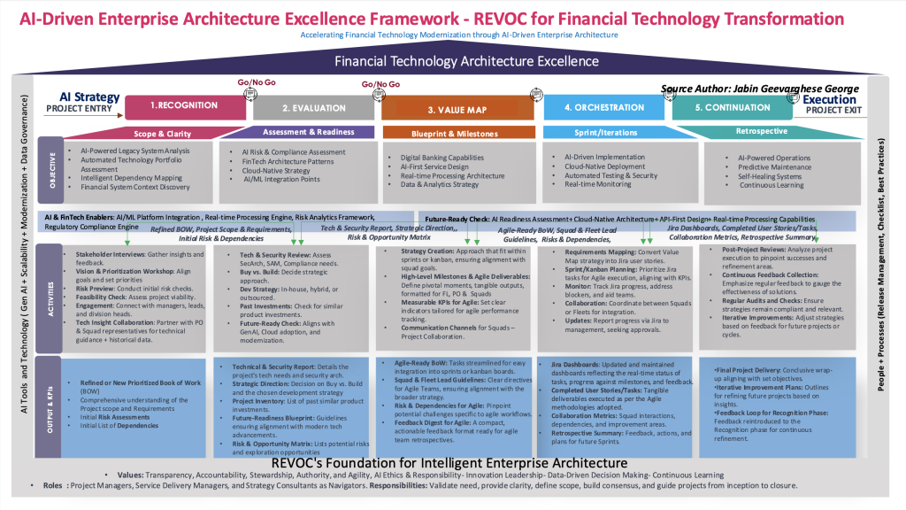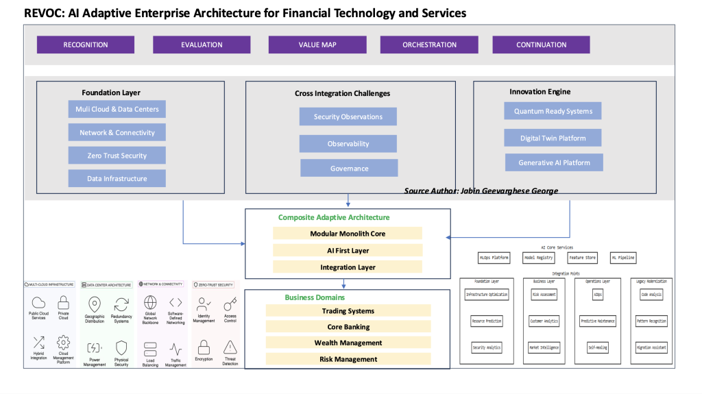 REVOC این چالشها را با بازنگری اساسی در مورد چگونگی ساختار فناوری مالی در دنیای اول هوش مصنوعی برطرف میکند. تکامل چارچوب از تحول چابک به معماری سازمانی نشان دهنده درک عمیقتری از این است که چگونه موسسات مالی به ثبات و نوآوری نیاز دارند – نه به عنوان نیروهای رقیب، بلکه به عنوان قابلیتهای مکمل.